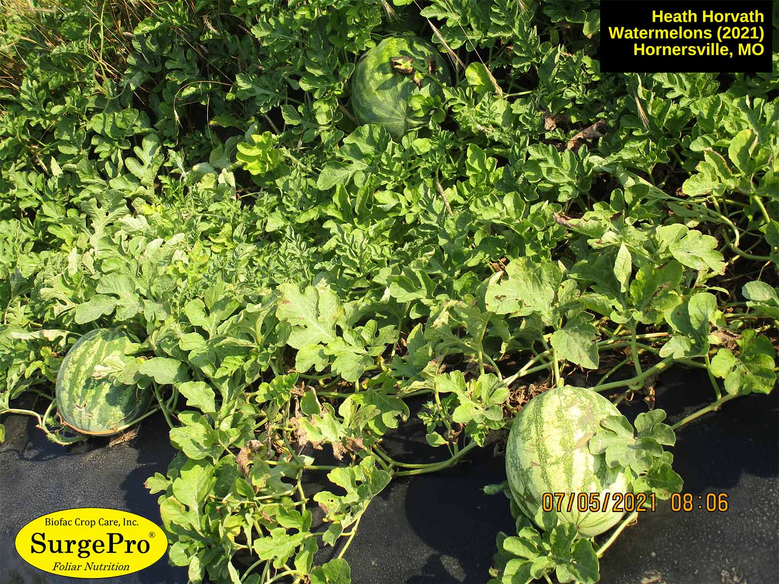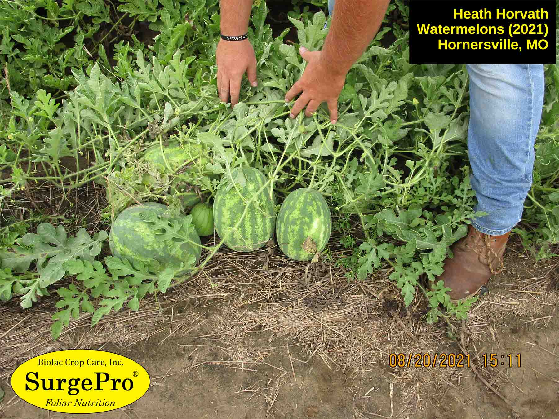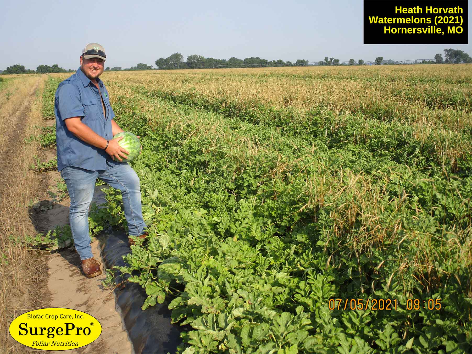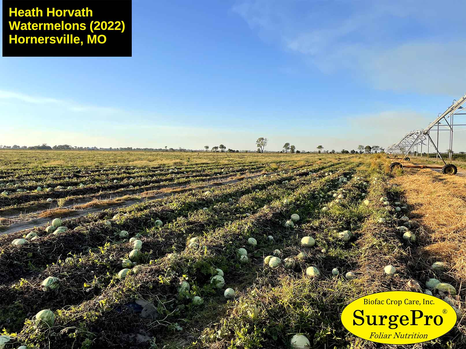 In Hornersville, MO, Heath Horvath reported a threefold increase in his watermelon yield per acre using SurgePro foliar fertilizer. The significant improvement is a notable contrast to his previous harvest seasons where his crops remained untreated. This was a great example showcasing the positive impact SurgePro has had on enhancing crop yields for our customers. In addition to his watermelon crop, Heath also treats his cotton crop with SurgePro.